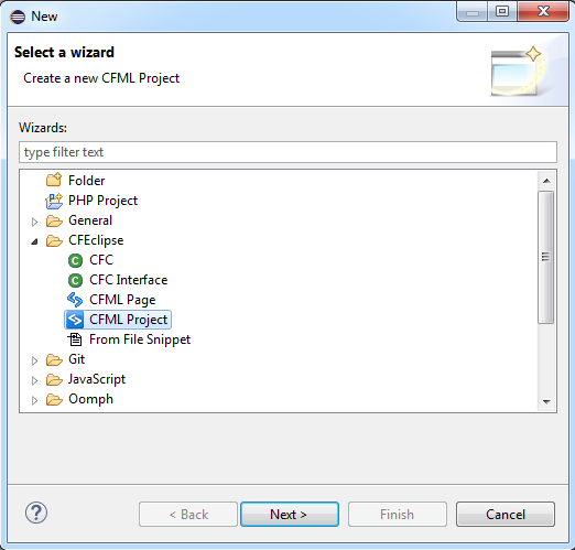 Eclipse New CFML Project